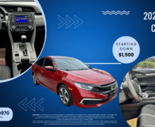 2HGFC2F6XLH588340Disclaimer: Auto financing pre-approval eligibility is determined by your credit history, income, employment, and debt-to-income ratio. ** Bi-Weekly payment of $291.32 estimate for qualified customers is based on 18% Annual Percentage Rate ( APR), $1,500 down, Documentation fee of $199 and a 66 month loan term.** This is merely an example. With approved credit. Terms may vary. Bi-weekly payments are only estimates derived from the vehicle price.